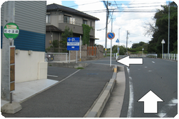 ③踏切を渡ったらすぐ、線路沿いの歩道をそのまま真っすぐ北へ行くと見えてきます。