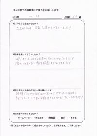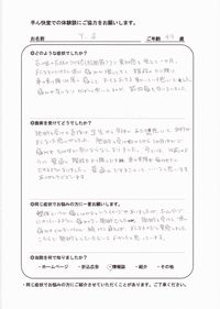 あの痛みの悲痛な声、見ていてもつらくなります。 先生の施術を受けて本当に良かったし、病院から見放されても良くなるんだ!と思います。