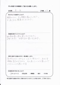 以前、腰を伸ばすことができないくらいの腰痛になったとき、何をしても治らなかったのが一度施術してもらっただけで、かなり楽になったのには驚きました。